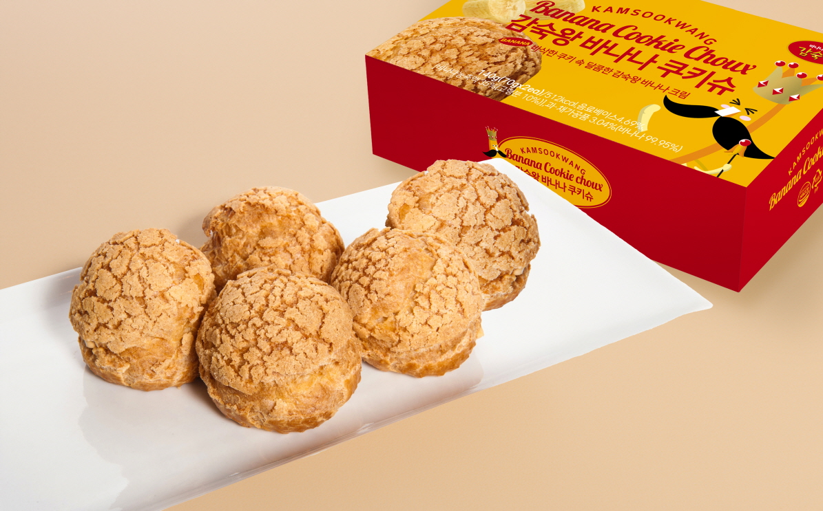 감숙왕 바나나 쿠키슈는 감숙왕으로 만든 달콤한 바나나 크림 위에 바삭한 식감의 쿠키를 덮어, 겉은 바삭하고 속은 촉촉한 식감을 구현해 낸 프리미엄 디저트다. 냉동 보관 제품으로 차갑게 먹으면 아이스크림처럼 시원하고 밀도 있는 식감을 느낄 수 있으며, 녹여 먹을 경우 부드럽고 크리미한 맛이 느껴지는 등 취향에 따라 선택해서 즐길 수 있다.