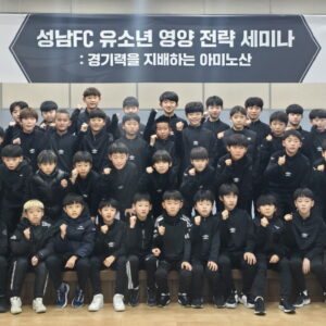 성남FC초·중·고 유소년 선수 및 학부모 160여명 참여 ‘아미노산 섭취 전략’애 대한 주제로 강연 (2025-12-23) 일동후디스가 유소년 축구선수들의 건강한 성장과 경기력 향상을 위해 ‘아미노산 세미나’를 지속 확대하고 있다. 일동후디스는 지난 11월 FC서울 유소년 축구선수를 대상으로 아미노산 세미나를 진행한 데 이어, 지난 12월 18일, 성남FC 유소년 축구선수를 대상으로 두 번째 세미나를 진행했다. 이번 세미나는 성남 소재 탄천종합운동장...p>