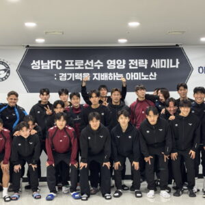 성남FC 프로선수, 코치진 등 50여명 참여 개개인의 컨디션과 경기 스케줄에 맞춘 아미노산 섭취 전략 제시 일동후디스가 국내 프로축구 성남FC 선수들을 대상으로 경기력 향상과 건강 관리를 위한 ‘아미노산 세미나’를 진행했다고 밝혔다. 지난 12일(목) 성남축구센터에서 진행된 이번 세미나는 강도 높은 훈련과 경기를 소화하는 프로 선수들의 실전 퍼포먼스 향상을 돕기 위해 마련됐다. 현장에는 성남FC 프로팀 선수 전원과 코치진...p>