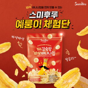 오는 14일(일)까지 체험단 100명 모집, 신제품 ‘감숙왕 바삭 바나나칩’ 증정 우수 리뷰어에게는 백화점 상품권 10만원권 제공 바나나 전문 글로벌 청과기업 스미후루코리아가 오는 14일(일)까지 ‘감숙왕 바삭 바나나칩’의 체험단을 모집한다고 밝혔다. 이번 체험단은 스미후루코리아의 첫 가공식품으로 출시된 ‘감숙왕 바삭 바나나칩’을 더 많은 소비자가 경험하도록 하기 위해 기획됐다. 체험단 모집 방법은 스미후루코리아 공식 인스타그램에서 확인할 수 있다. 모집...p>