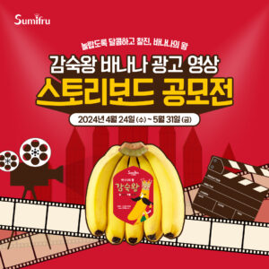 소비자의 톡톡 튀는 아이디어로 광고 영상 제작…감숙왕 바나나 특장점 널리 알려 30초 이상의 영상 제작이 가능한 스토리보드 구성… 당선작은 상금 ‘300만원’ 수여 바나나 전문 글로벌 청과기업 스미후루코리아가 ‘감숙왕 바나나’의 광고 영상 스토리보드 공모전을 진행한다고 밝혔다. 이번 공모전은 스미후루코리아의 대표 제품인 ‘감숙왕 바나나’의 특장점을 전달하고 소비자들에게 보다 더 친숙하게 알리기 위해 기획됐다. 참여 방법은 30초 이상의...p>