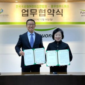 – 18일 풀무원푸드머스 본사서 전국 국공립어린이집 연합회와 업무 협약식…양측 우호협력관계 다져 – 풀무원의 바른먹거리 공급하여 영유아의 올바른 식습관 형성과 건강한 성장 발달 도모 풀무원 계열 식자재 유통기업 풀무원푸드머스(대표 천영훈)는 전국 국공립어린이집 연합회(이하 전국련, 회장 허현주)와 영유아들의 올바른 식습관 형성을 통한 건강한 성장 발달을 위한 업무 협약을 체결했다고 19일 밝혔다. 18일 풀무원푸드머스 서울 수서 본사에서 열린...p>