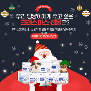 오는 22일(금)까지 일동후디스 공식 SNS 계정에서 진행 당첨자 대상 후디스펫 제품 혹은 스타벅스 쿠폰 증정 (2023-12-18) 일동후디스 후디스펫이 댕냥이와 함께 크리스마스를 준비하는 이들을 위해 SNS 이벤트를 진행한다고 밝혔다. 오는 22일(금)까지 진행되는 이번 이벤트는 우리 댕냥이들이 추운 겨울 날씨에도 건강하고 즐거운 나날을 보냈으면 하는 소망을 담아 기획됐다. 이벤트 참여 방법은 일동후디스 인스타그램 공식 계정을 팔로우한 후,...p>