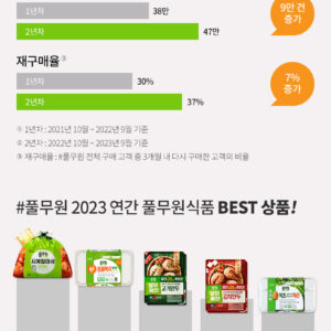 – 2021년 8월 오픈 이후 누적 가입자 28만, 연간 주문 건수 47만 돌파하며 지속 ‘성장 거듭’ – AI 추천 서비스, 구매 후기 등 데이터 분석과 AI 활용 강화하여 고객 편의 증대 – ‘지속가능한 바른먹거리’ 가치 바탕으로 ESG 경영 확대하고 로열티 강화할 것 풀무원(대표 이효율)은 통합 브랜드 쇼핑 플랫폼 ‘#(샵)풀무원’이 론칭 이후 2년간 매출이 68% 이상...p>
