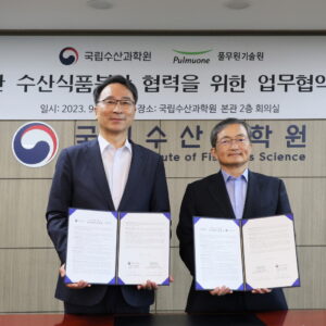 – 18일 부산 기장군 국립수산과학원에서 양측 관계자 참석한 가운데 협약 진행 – 블루푸드 시장 선점을 위한 첨단 수산 푸드테크 원천기술 확보를 위해 연구 협력 추진 풀무원(대표 이효율)은 해양수산부 국립수산과학원(원장 우동식)과 첨단 수산 푸드테크 산업 발전을 위한 업무협약(MOU)을 체결했다고 19일 밝혔다. 부산광역시 기장군에 위치한 국립수산과학원에서 열린 이날 협약식은 국립수산과학원 우동식 원장, 풀무원기술원 이상윤 원장, 풀무원기술원 식품안전실...p>